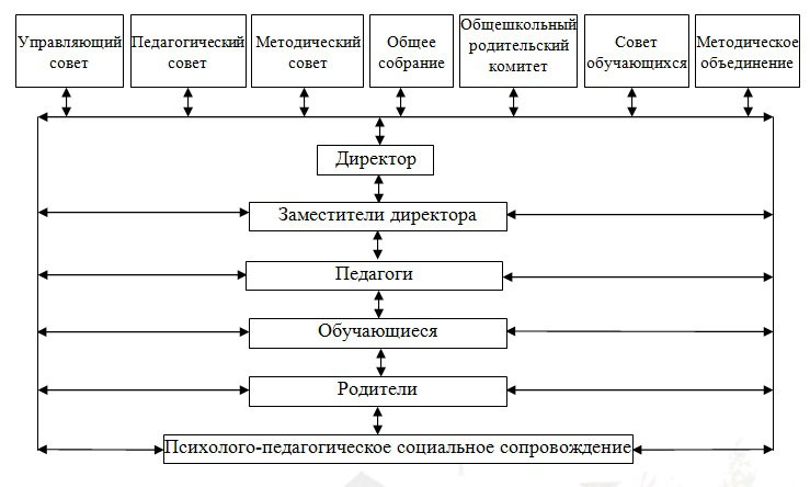 Коллегиальные органы управления: Общее собрание трудового коллектива, Педагогический совет, Управляющий совет.